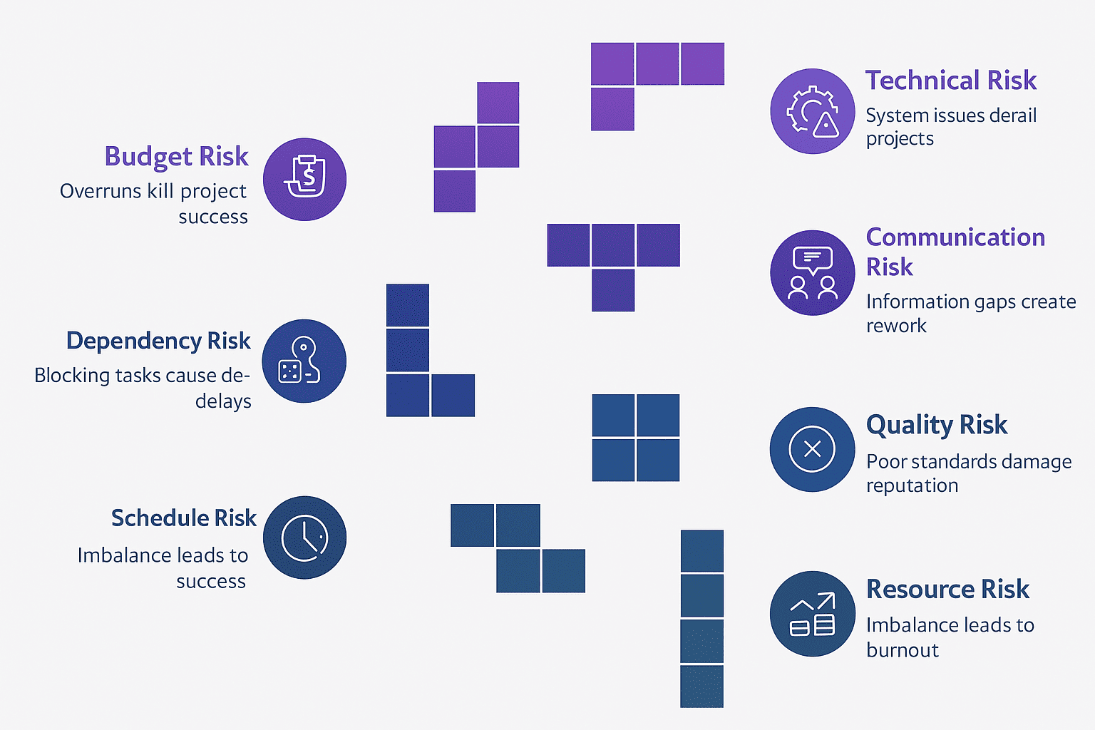 When you're running multiple projects simultaneously, risks don't exist in isolation. A delay in one project might cascade to three others.