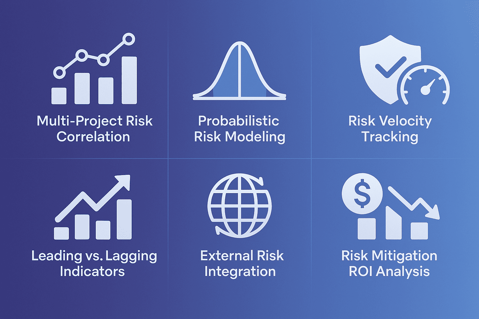- Cascading impact analysis: If Risk A materializes, AI automatically recalculates the probability and severity of Risks B, C, and D that depend on it