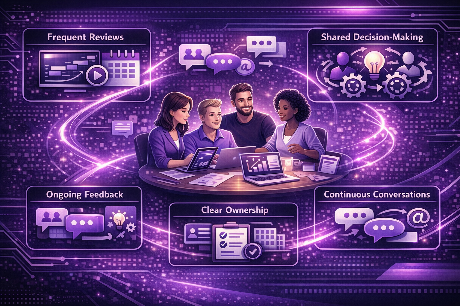 - Ongoing conversations instead of formal sign-offs