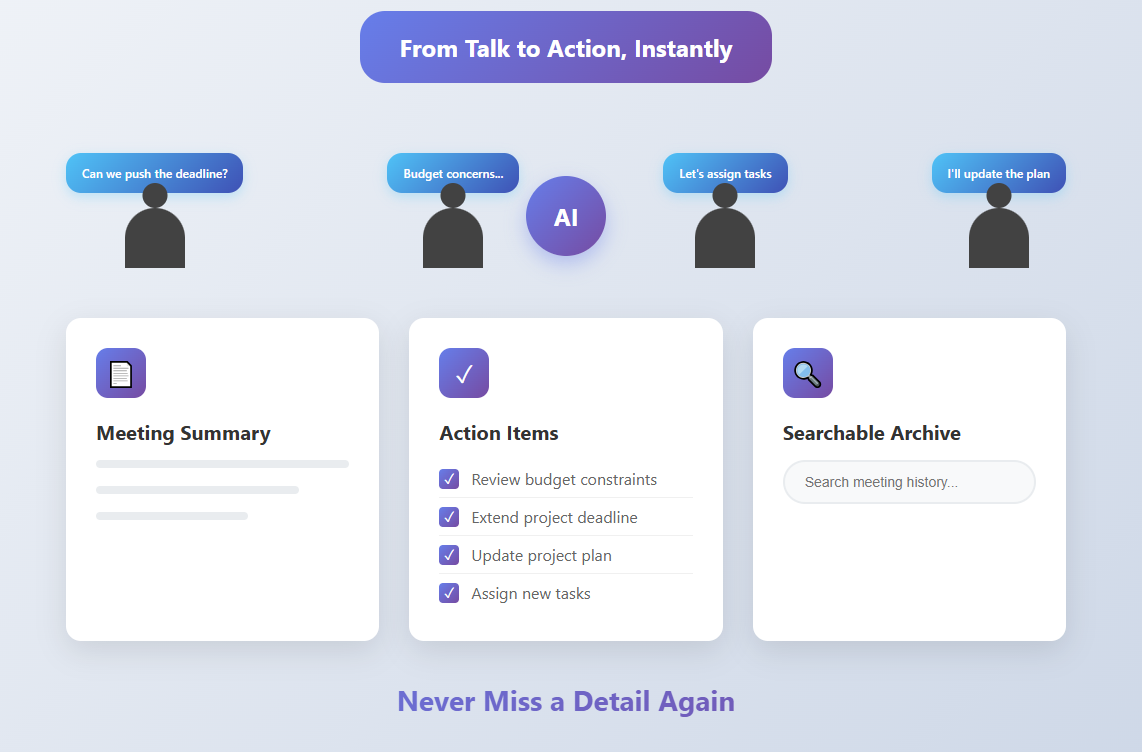 Meetings are essential, but can consume valuable time. AI-powered tools enable: