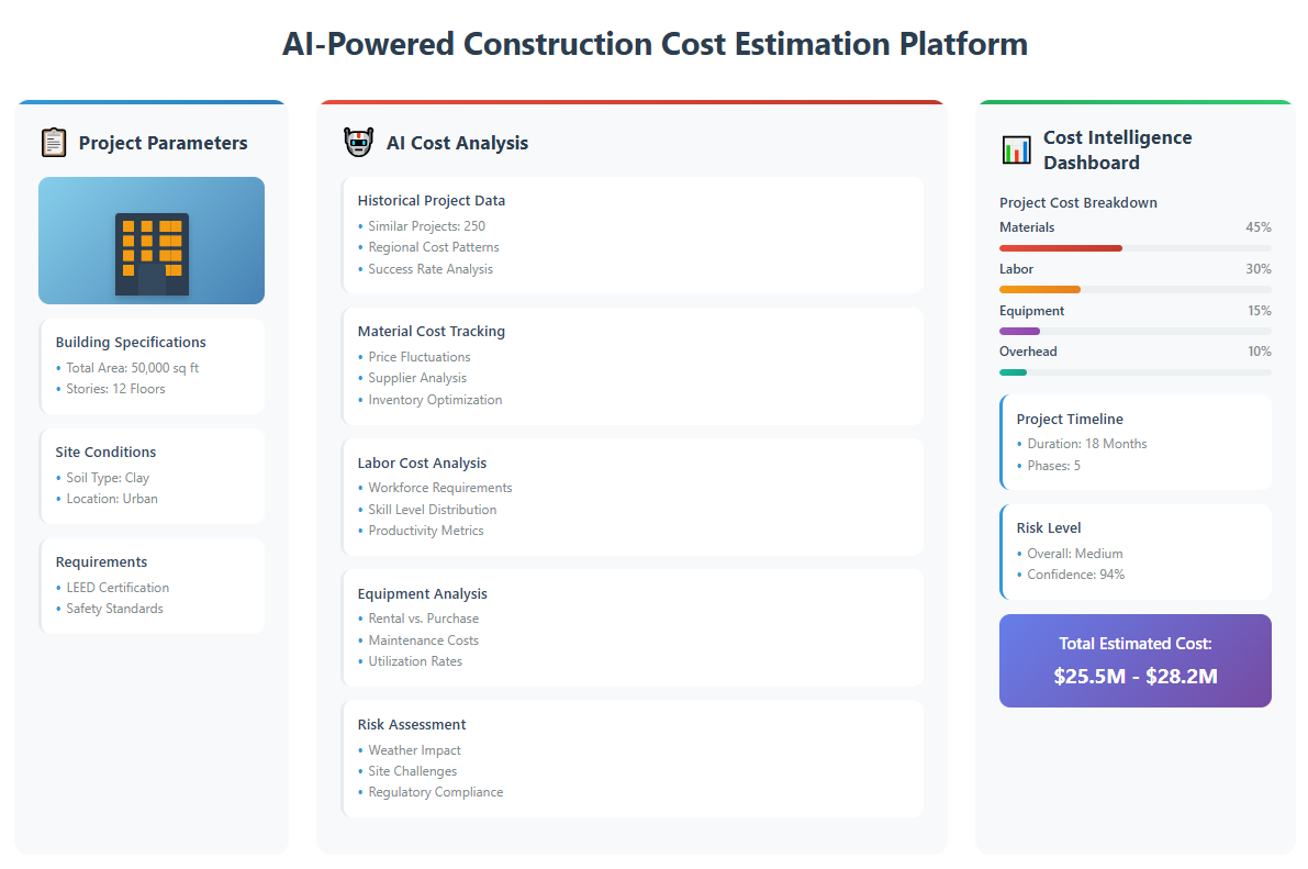 - Pattern Recognition: Identifies cost trends across thousands of historical projects that humans miss