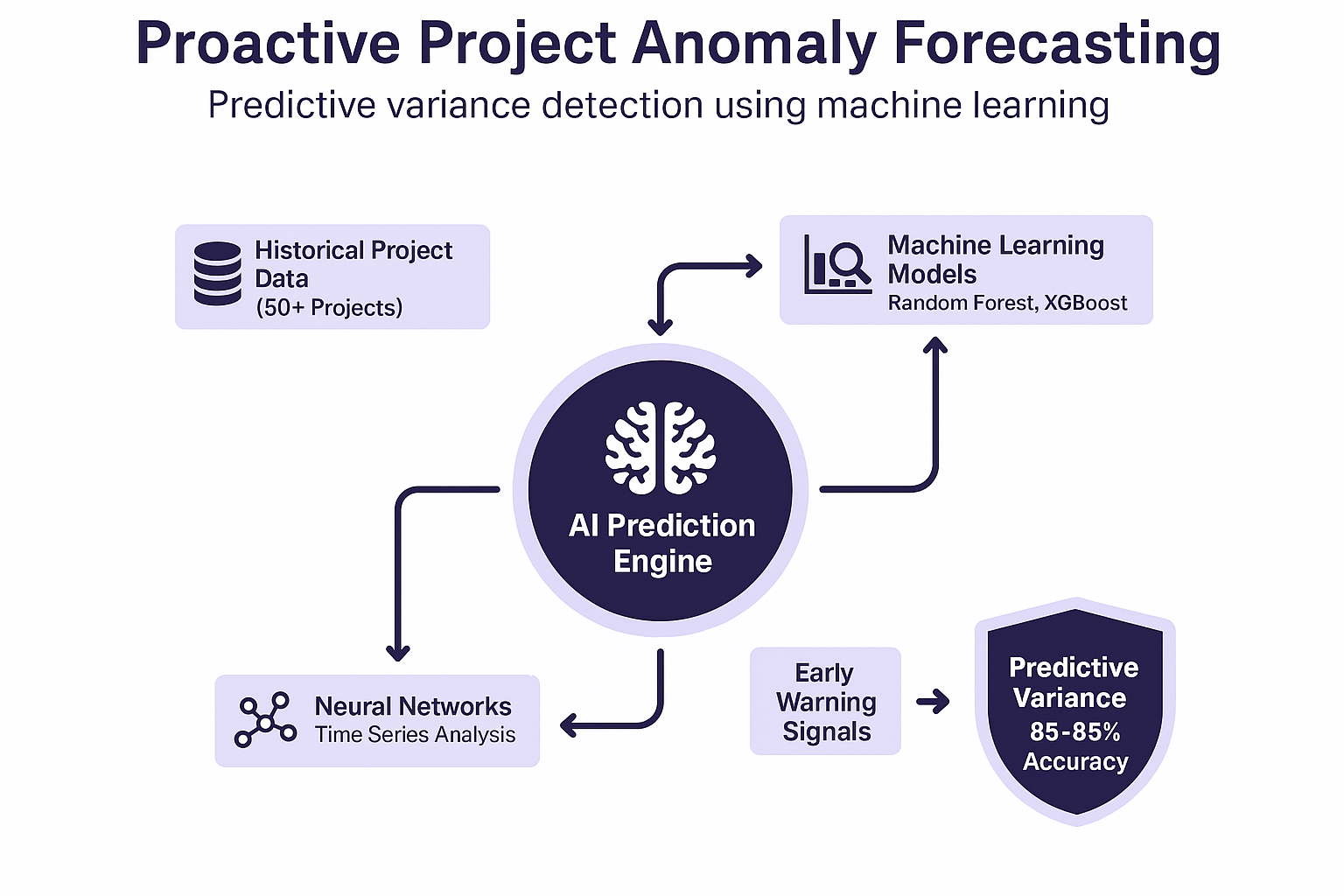 Organizations implementing predictive detection achieve 85-95% accuracy in identifying critical variances before they impact deliverables. A technology company prevented $2.3 million in potential overruns by addressing predicted variances early.
