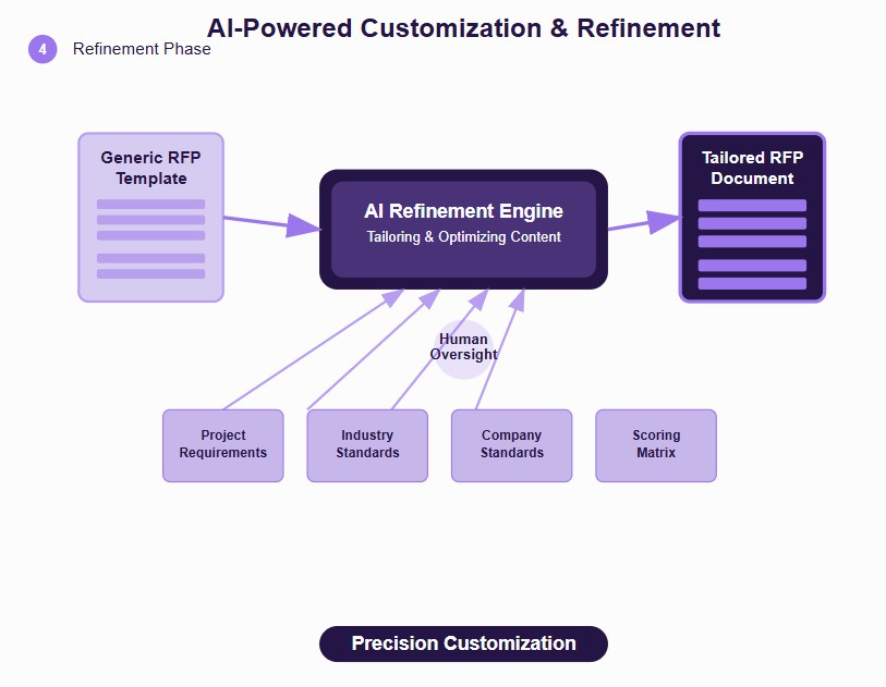 Remember that AI excels at maintaining consistency across similar document sections while adapting content to specific project needs. This ensures your RFP maintains a professional tone and comprehensive coverage without the typical human oversight errors.