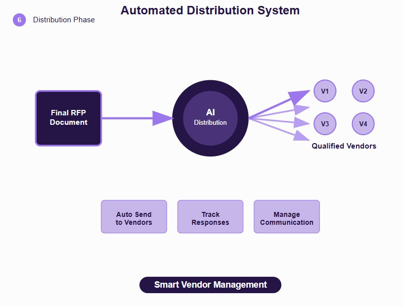 Streamline vendor outreach and ongoing communication through intelligent automation systems. This final step ensures your carefully crafted RFP reaches the right vendors while maintaining professional communication standards throughout the process.