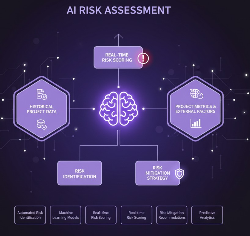 Traditional risk management is reactive, but AI enables proactive risk identification and mitigation. By analyzing patterns from past projects and current data, AI can predict potential issues before they become critical problems.
