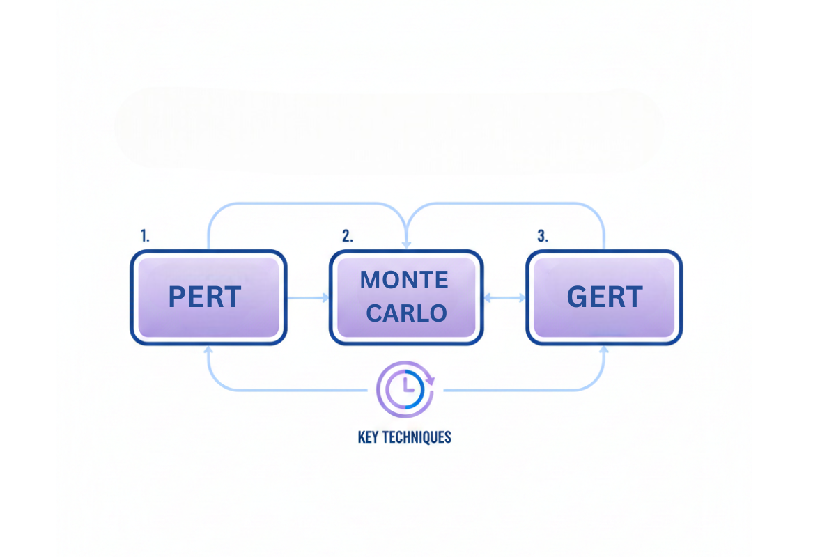 Several established methods help project managers implement probabilistic scheduling. Each has unique characteristics suited to different project types and uncertainty levels.