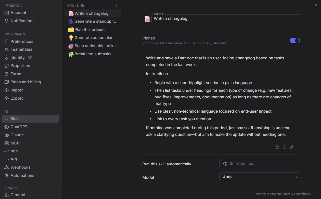 - Instant standups: Let Dart AI instantly summarize daily progress for every team member without the manual hustle